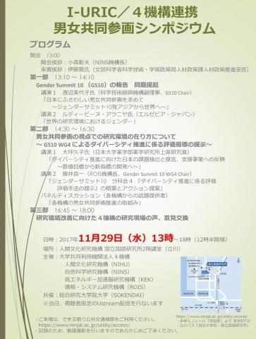 (プログラム確定)11/29 I-URIC/4機構連携男女共同参画シンポジウム